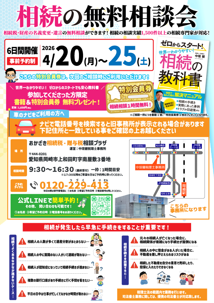 【会 場】おかざき相続税・贈与税相談プラザ(中垣健税理士事務所内)